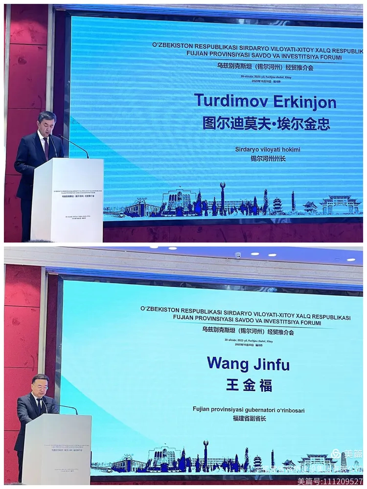為深化拓展福建與烏茲別克斯坦錫爾河州經(jīng)貿(mào)交流與合作,2025年10月30日,烏茲別克斯斯坦(錫爾河州)經(jīng)貿(mào)推介會在福州成功舉辦。烏茲別克斯坦錫爾河州州長圖爾迪莫夫·埃爾金忠,福建省副省長王金福出席會議并致辭。集團(tuán)公司副總鄭信貴,二公司副總張華一行參加會議。