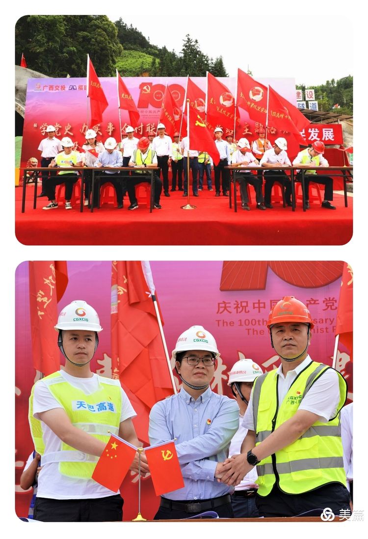 5月8日,福建路橋天巴高速№3合同段拾貳坡隧道現(xiàn)場(chǎng)黨旗飄揚(yáng),天巴路指揮部全體黨員干部、各總監(jiān)辦、各項(xiàng)目經(jīng)理部及鳳山縣長(zhǎng)洲鎮(zhèn)機(jī)關(guān)黨支部、東蘭縣金谷鄉(xiāng)納立村黨支部共同參加了“學(xué)黨史 辦實(shí)事 企村聯(lián)建 共走振興路”主題活動(dòng)暨“交投先鋒+紅色長(zhǎng)壽行”黨建品牌啟動(dòng)儀式,正式開啟村企聯(lián)建促發(fā)展的序幕。 |