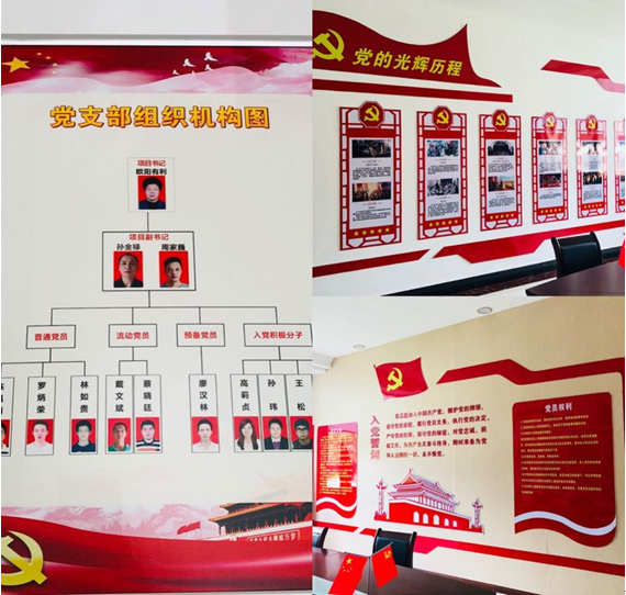 該支部還專門設(shè)立了黨支部活動(dòng)室。活動(dòng)室實(shí)行一旗(黨旗)一誓詞(入黨誓言)兩制度(支部工作職責(zé)、學(xué)習(xí)計(jì)劃)上墻,配備桌椅、投影儀、電腦、書櫥等硬件設(shè)施,學(xué)習(xí)紀(jì)錄、活動(dòng)安排等記載詳細(xì)并及時(shí)公開,為一線黨員創(chuàng)造了良好的學(xué)習(xí)條件。進(jìn)一步提升項(xiàng)目部黨員黨性修養(yǎng),夯強(qiáng)了黨建基礎(chǔ)工作,充分發(fā)揮了黨組織的戰(zhàn)斗堡壘作用。讓黨員活動(dòng)室成為黨性鍛煉之、凝聚人心之、展示作為之,是項(xiàng)目部加強(qiáng)黨建工作的又一重要舉措。